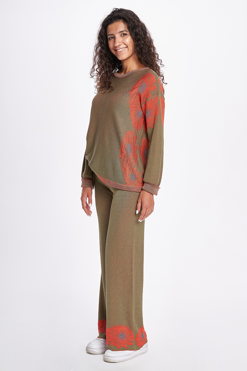 TUTA CAMELIA 0146 JACQUARD PIQUET BICOLORE IN SETA PER QUESTA TUTA CON FIORE